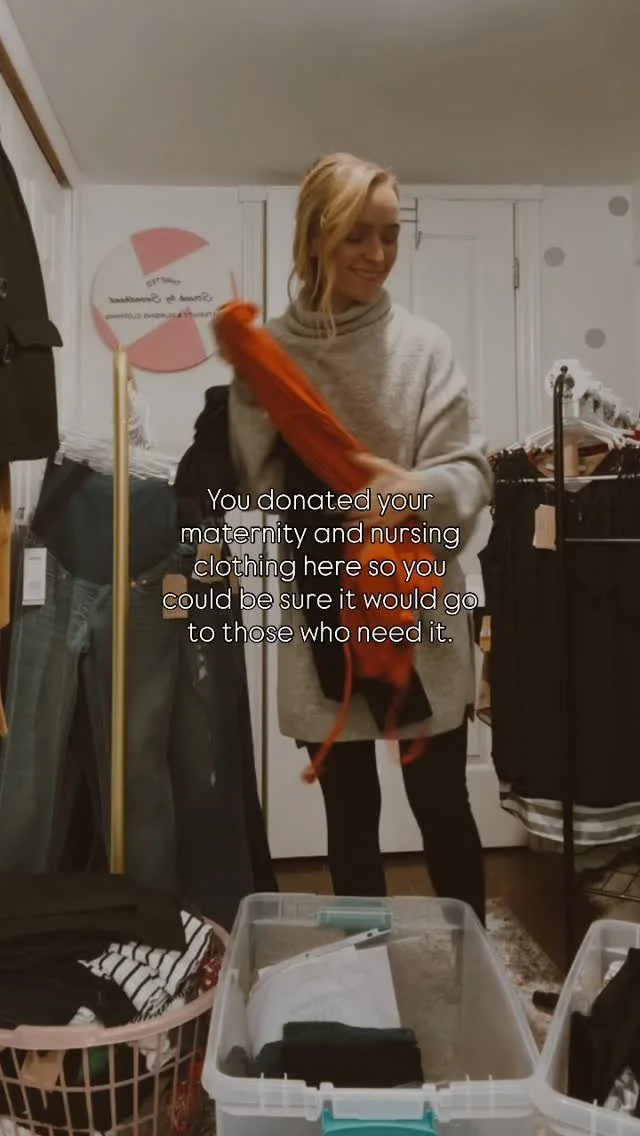 Each piece of clothing is sourced directly from a local mother's closet. Mothers who are finished with their pieces can sell and/or donate their items to the shop. The clothing is then laundered, steamed, and hung, ready to be tried on by the next mama. You can also peruse each piece online.