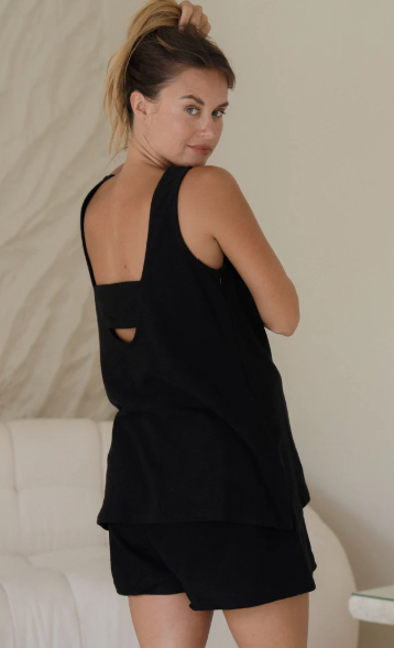“An effortless top that ticks all the boxes. Made in a textured stretch jersey for superior comfort, it looks structured yet relaxed at the same time. With design details like an bra friendly cut out and discreet side zips for nursing access, makes this the perfect all-occasion maternity and nursing top.
