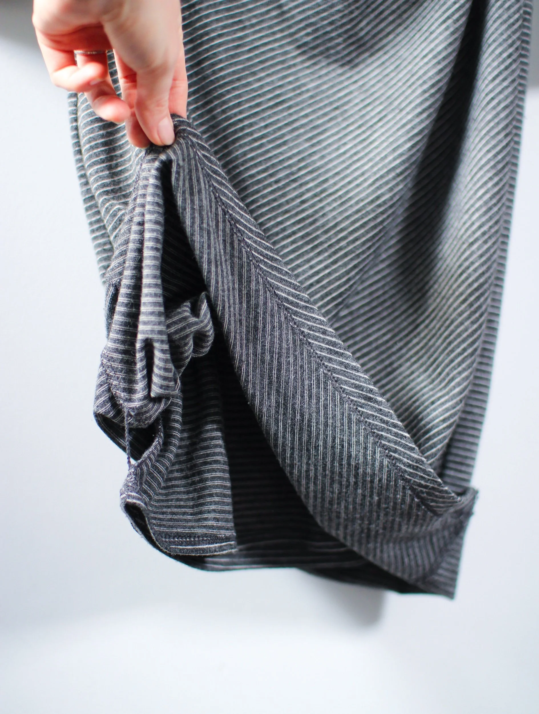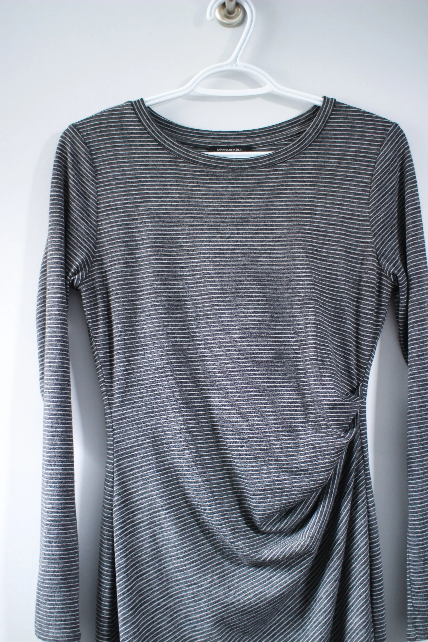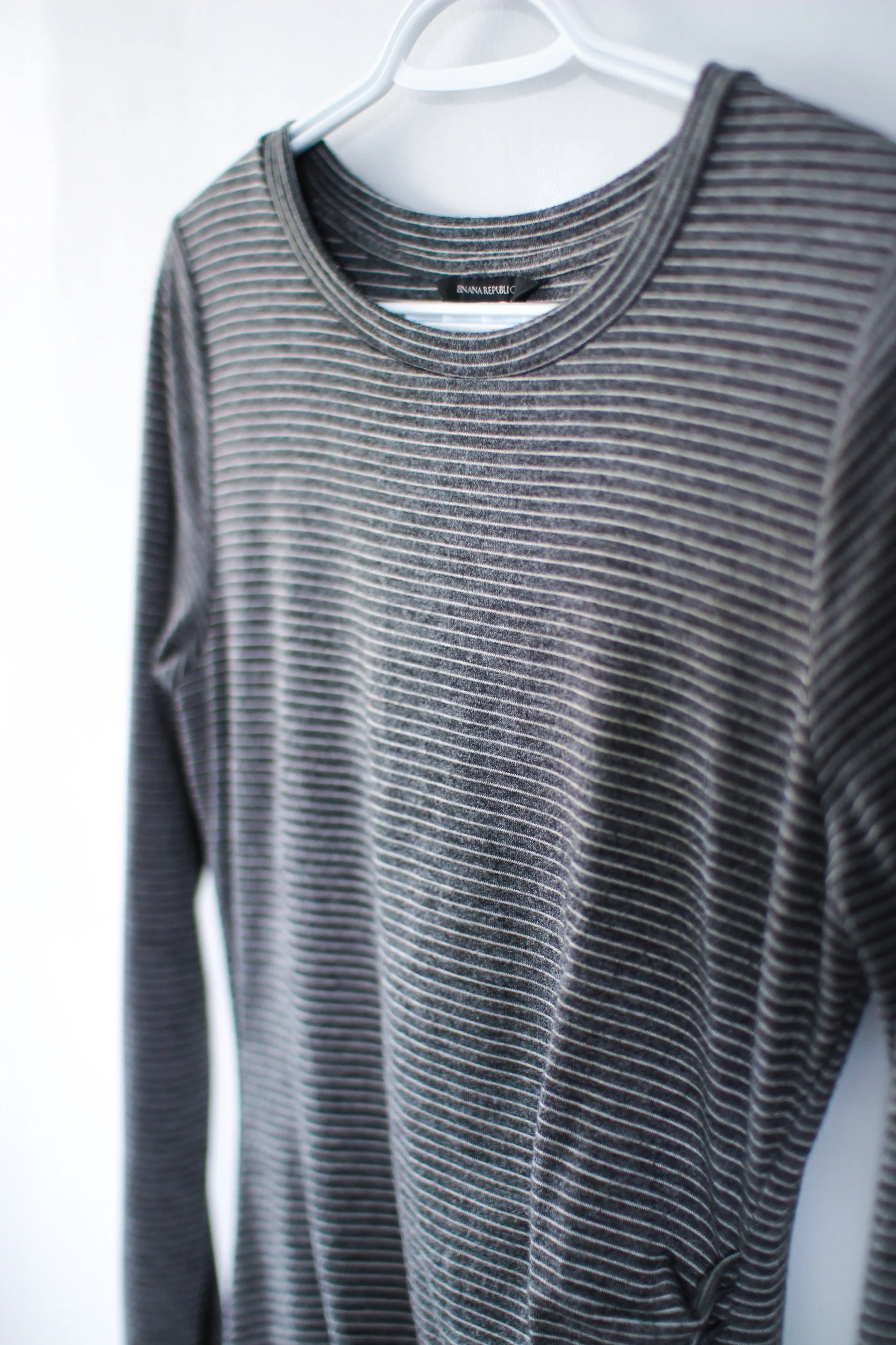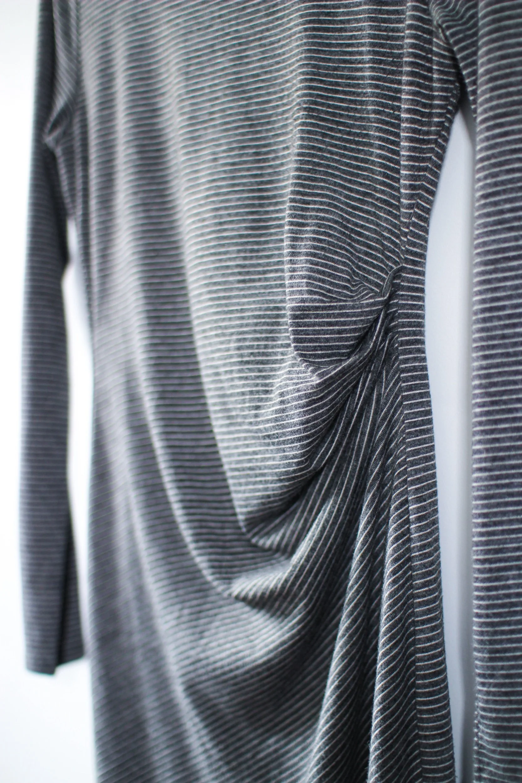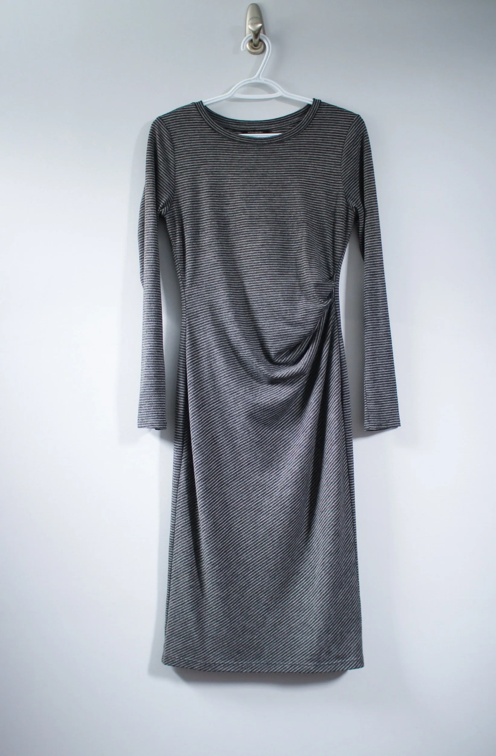 This dark gray/charcoal dress is not labelled maternity, but is certainly suitable for the bump and postpartum.