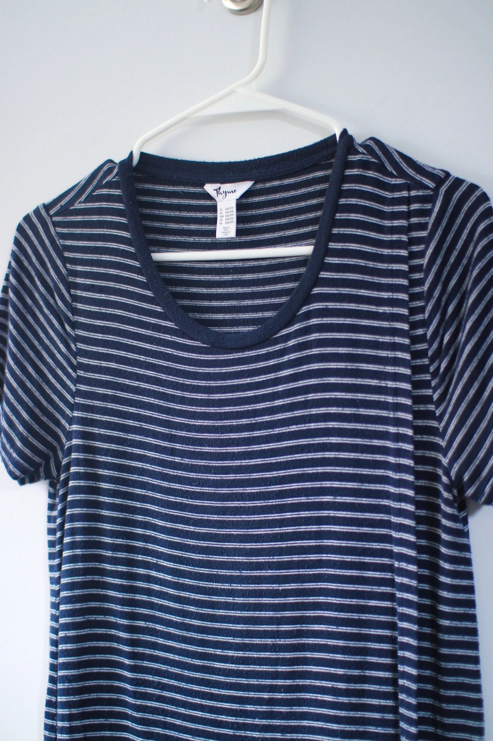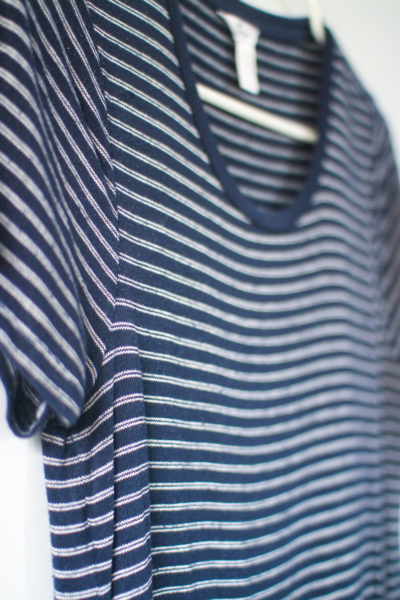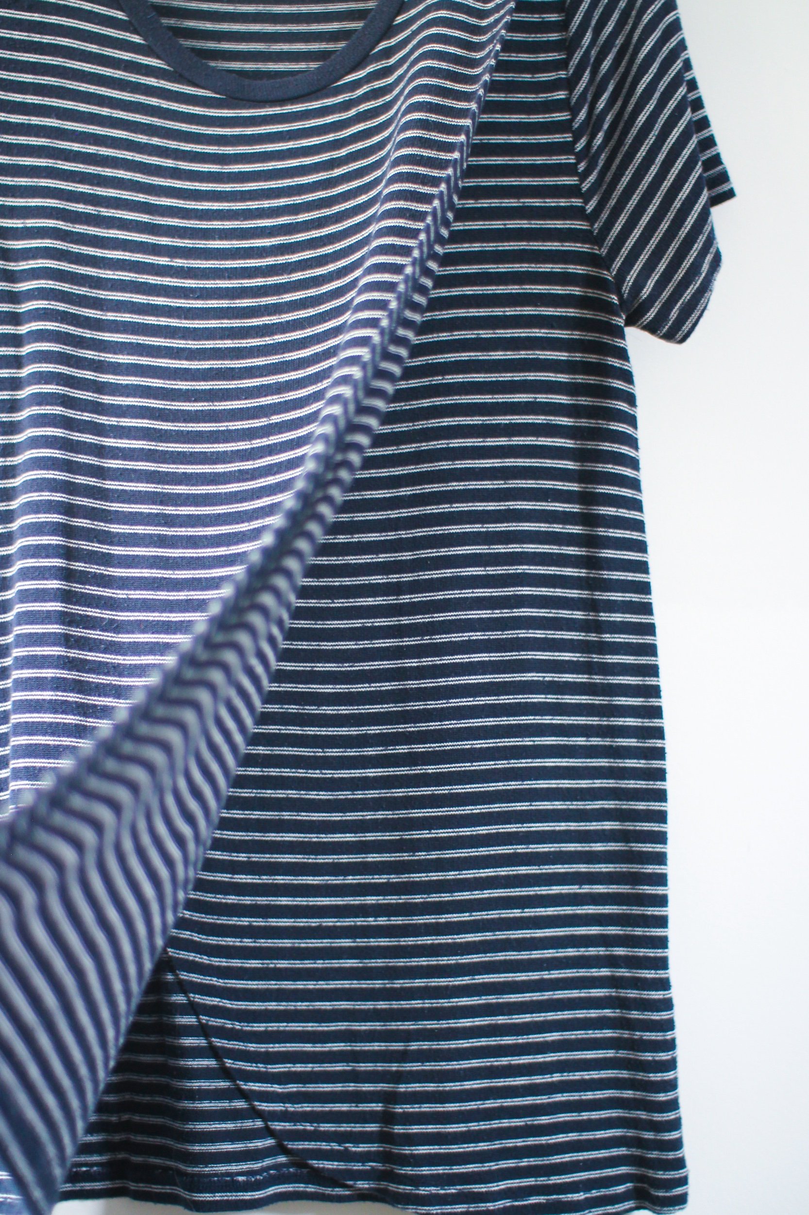 This purple T-shirt has fun pleated gathering at the base of your bump, allowing it to stretch as your body grows and making it suitable for casual postpartum wear as well.